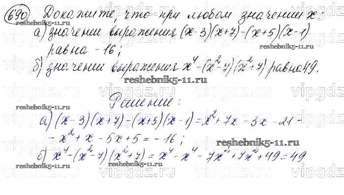 Готовая домашняя работа с ответами по Алгебре за 7 класс Макарычев, Миндюк, Нешков, Суворова Учебник Просвещение 2015 ФГОС - Упражнения 690