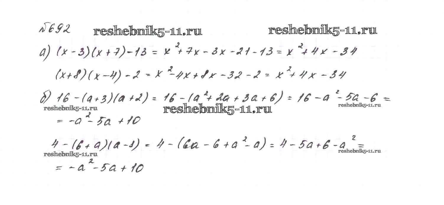Готовая домашняя работа с ответами по Алгебре за 7 класс Макарычев, Миндюк, Нешков, Суворова Учебник Просвещение 2015 ФГОС - Упражнения 692