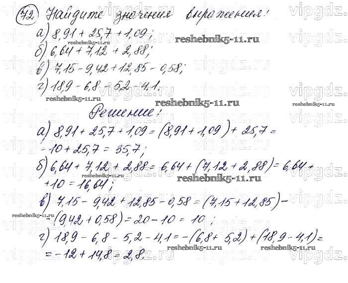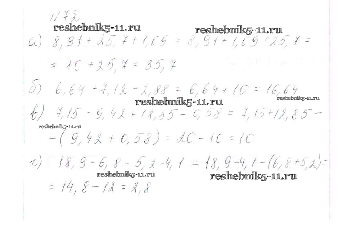 Готовая домашняя работа с ответами по Алгебре за 7 класс Макарычев, Миндюк, Нешков, Суворова Учебник Просвещение 2015 ФГОС - Упражнения 72