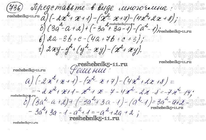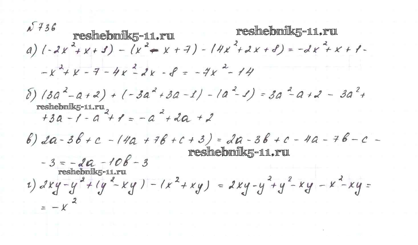 Готовая домашняя работа с ответами по Алгебре за 7 класс Макарычев, Миндюк, Нешков, Суворова Учебник Просвещение 2015 ФГОС - Упражнения 736