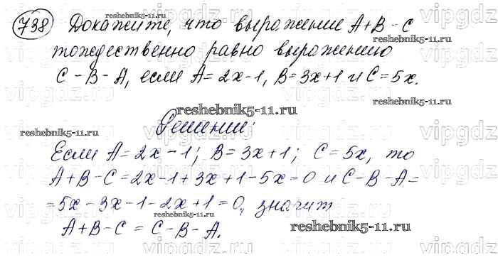 Готовая домашняя работа с ответами по Алгебре за 7 класс Макарычев, Миндюк, Нешков, Суворова Учебник Просвещение 2015 ФГОС - Упражнения 738