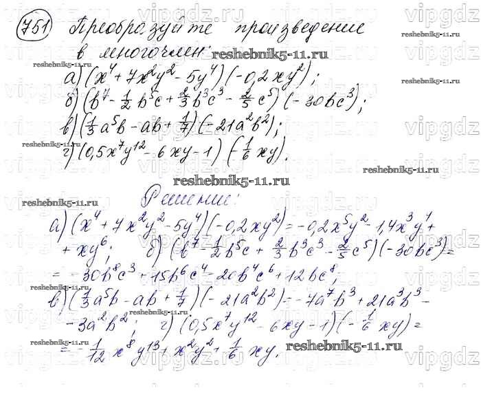 Готовая домашняя работа с ответами по Алгебре за 7 класс Макарычев, Миндюк, Нешков, Суворова Учебник Просвещение 2015 ФГОС - Упражнения 751