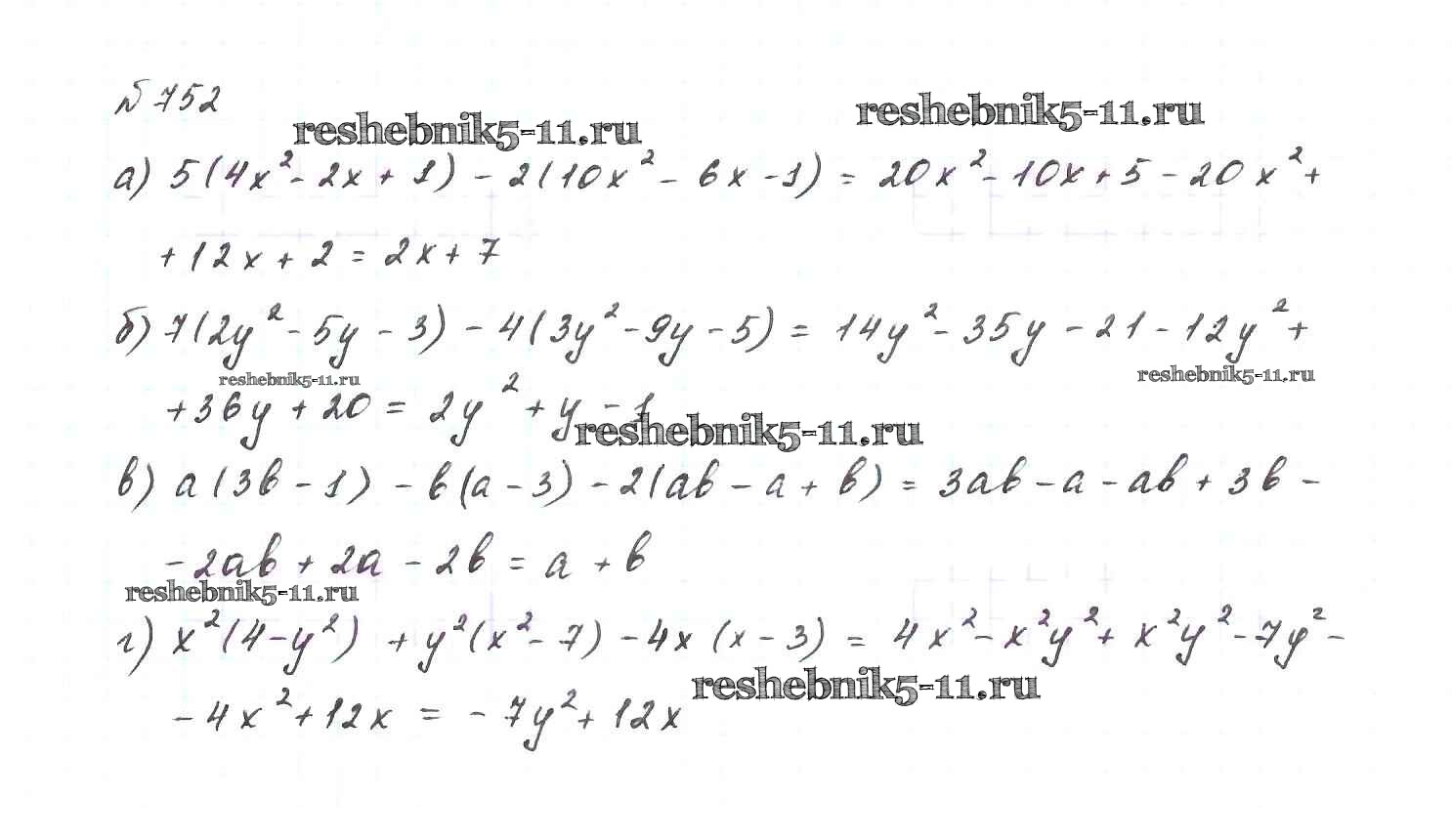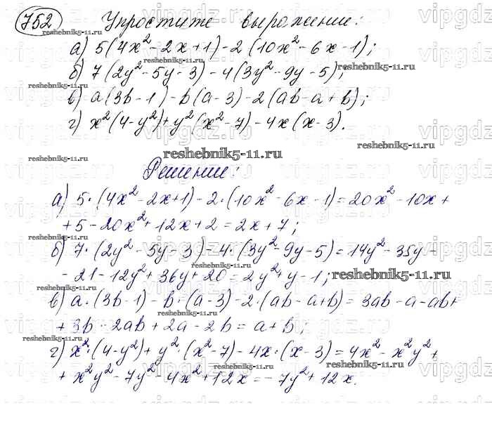Готовая домашняя работа с ответами по Алгебре за 7 класс Макарычев, Миндюк, Нешков, Суворова Учебник Просвещение 2015 ФГОС - Упражнения 752