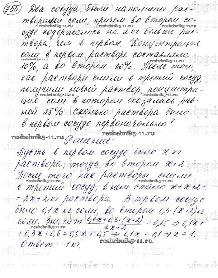 Готовая домашняя работа с ответами по Алгебре за 7 класс Макарычев, Миндюк, Нешков, Суворова Учебник Просвещение 2015 ФГОС - Упражнения 755