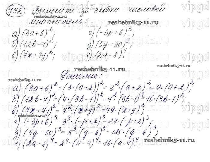 Готовая домашняя работа с ответами по Алгебре за 7 класс Макарычев, Миндюк, Нешков, Суворова Учебник Просвещение 2015 ФГОС - Упражнения 772