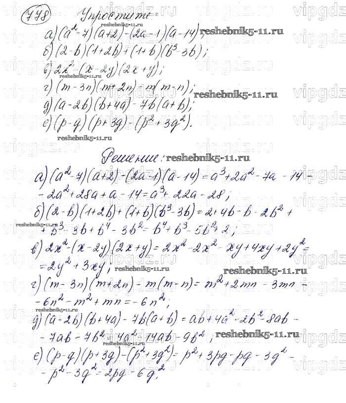 Готовая домашняя работа с ответами по Алгебре за 7 класс Макарычев, Миндюк, Нешков, Суворова Учебник Просвещение 2015 ФГОС - Упражнения 778