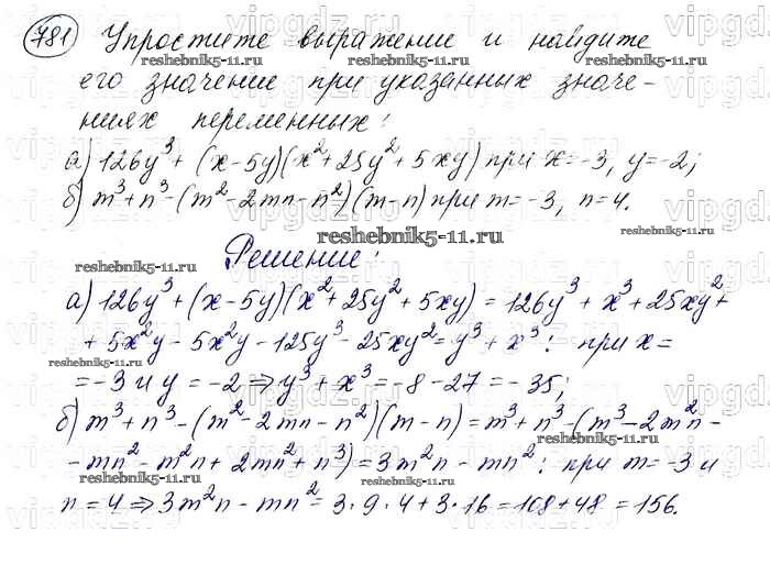 Готовая домашняя работа с ответами по Алгебре за 7 класс Макарычев, Миндюк, Нешков, Суворова Учебник Просвещение 2015 ФГОС - Упражнения 781