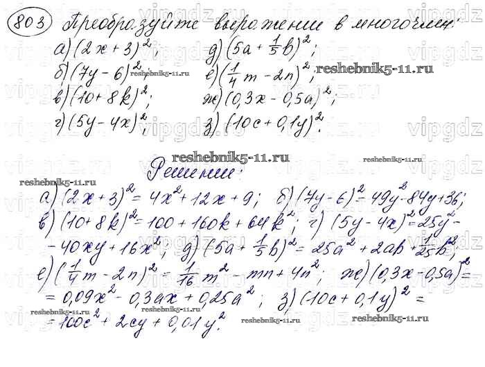 Готовая домашняя работа с ответами по Алгебре за 7 класс Макарычев, Миндюк, Нешков, Суворова Учебник Просвещение 2015 ФГОС - Упражнения 803