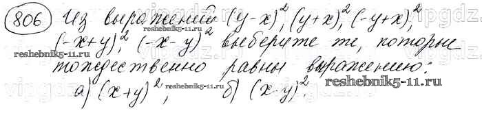 Готовая домашняя работа с ответами по Алгебре за 7 класс Макарычев, Миндюк, Нешков, Суворова Учебник Просвещение 2015 ФГОС - Упражнения 806
