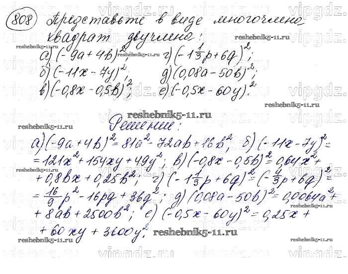 Готовая домашняя работа с ответами по Алгебре за 7 класс Макарычев, Миндюк, Нешков, Суворова Учебник Просвещение 2015 ФГОС - Упражнения 808