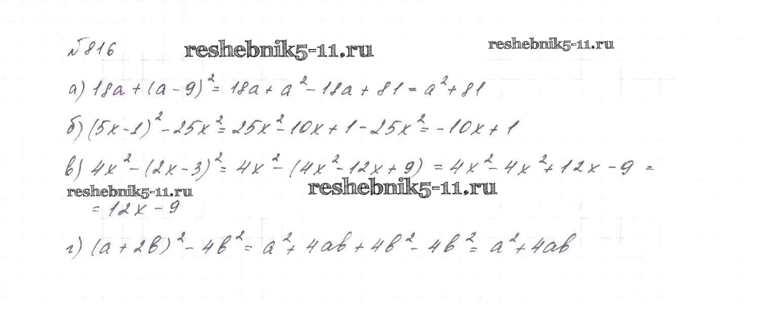 Готовая домашняя работа с ответами по Алгебре за 7 класс Макарычев, Миндюк, Нешков, Суворова Учебник Просвещение 2015 ФГОС - Упражнения 816
