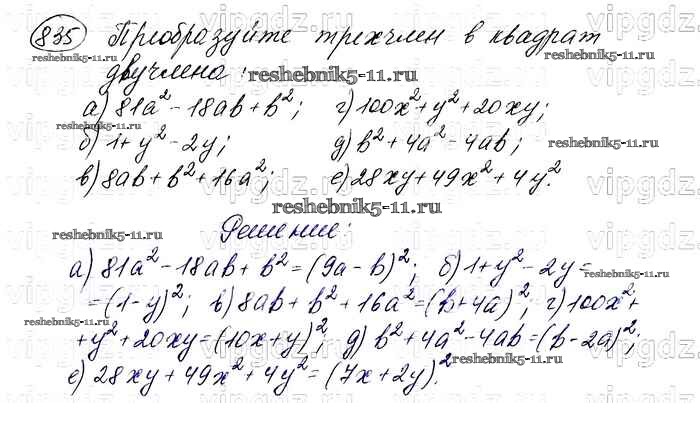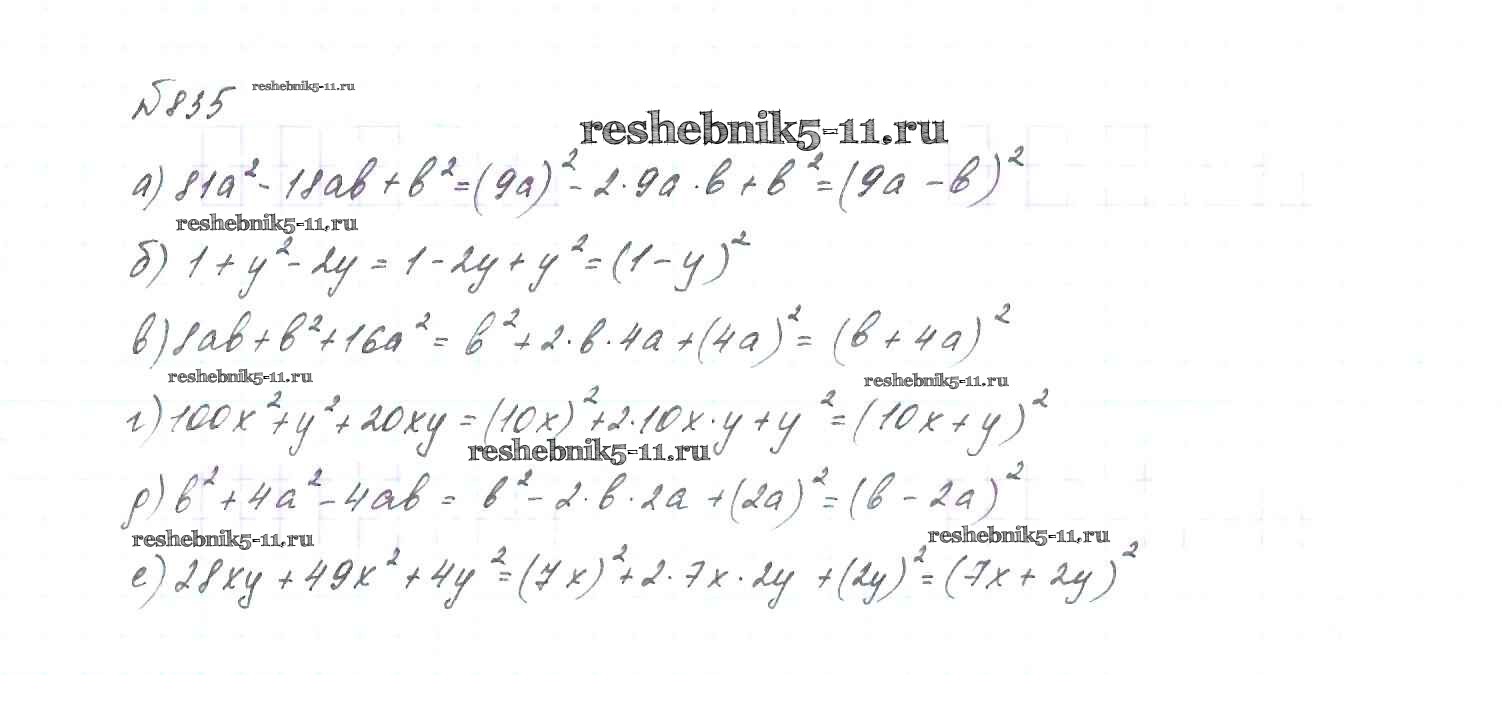 Готовая домашняя работа с ответами по Алгебре за 7 класс Макарычев, Миндюк, Нешков, Суворова Учебник Просвещение 2015 ФГОС - Упражнения 835
