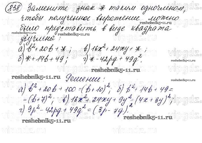 Готовая домашняя работа с ответами по Алгебре за 7 класс Макарычев, Миндюк, Нешков, Суворова Учебник Просвещение 2015 ФГОС - Упражнения 838
