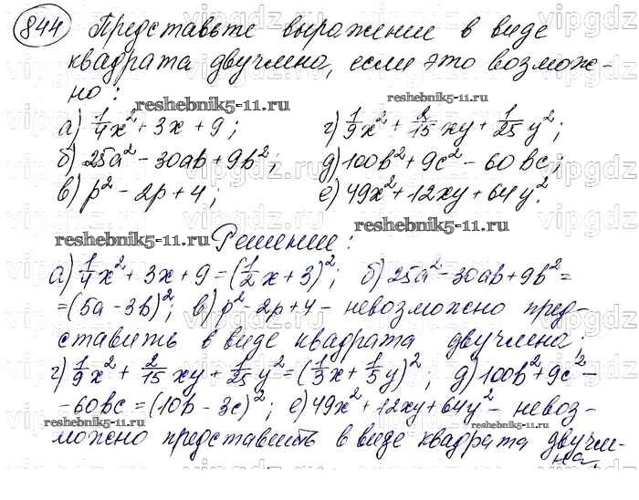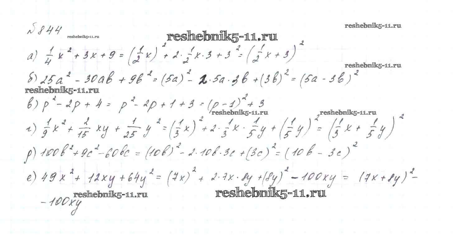 Готовая домашняя работа с ответами по Алгебре за 7 класс Макарычев, Миндюк, Нешков, Суворова Учебник Просвещение 2015 ФГОС - Упражнения 844