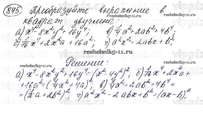 Готовая домашняя работа с ответами по Алгебре за 7 класс Макарычев, Миндюк, Нешков, Суворова Учебник Просвещение 2015 ФГОС - Упражнения 845