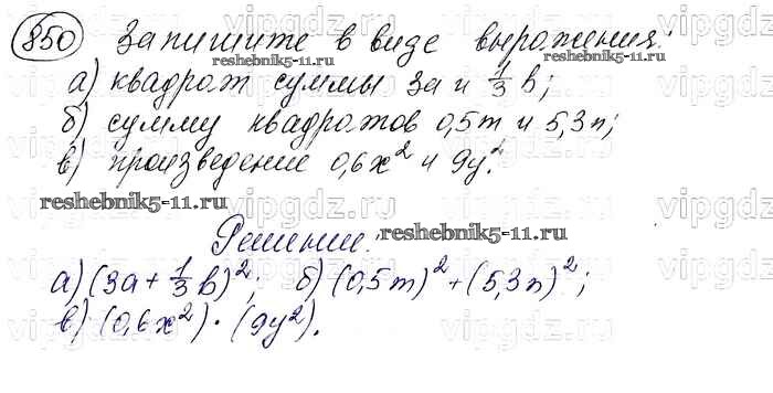 Готовая домашняя работа с ответами по Алгебре за 7 класс Макарычев, Миндюк, Нешков, Суворова Учебник Просвещение 2015 ФГОС - Упражнения 850