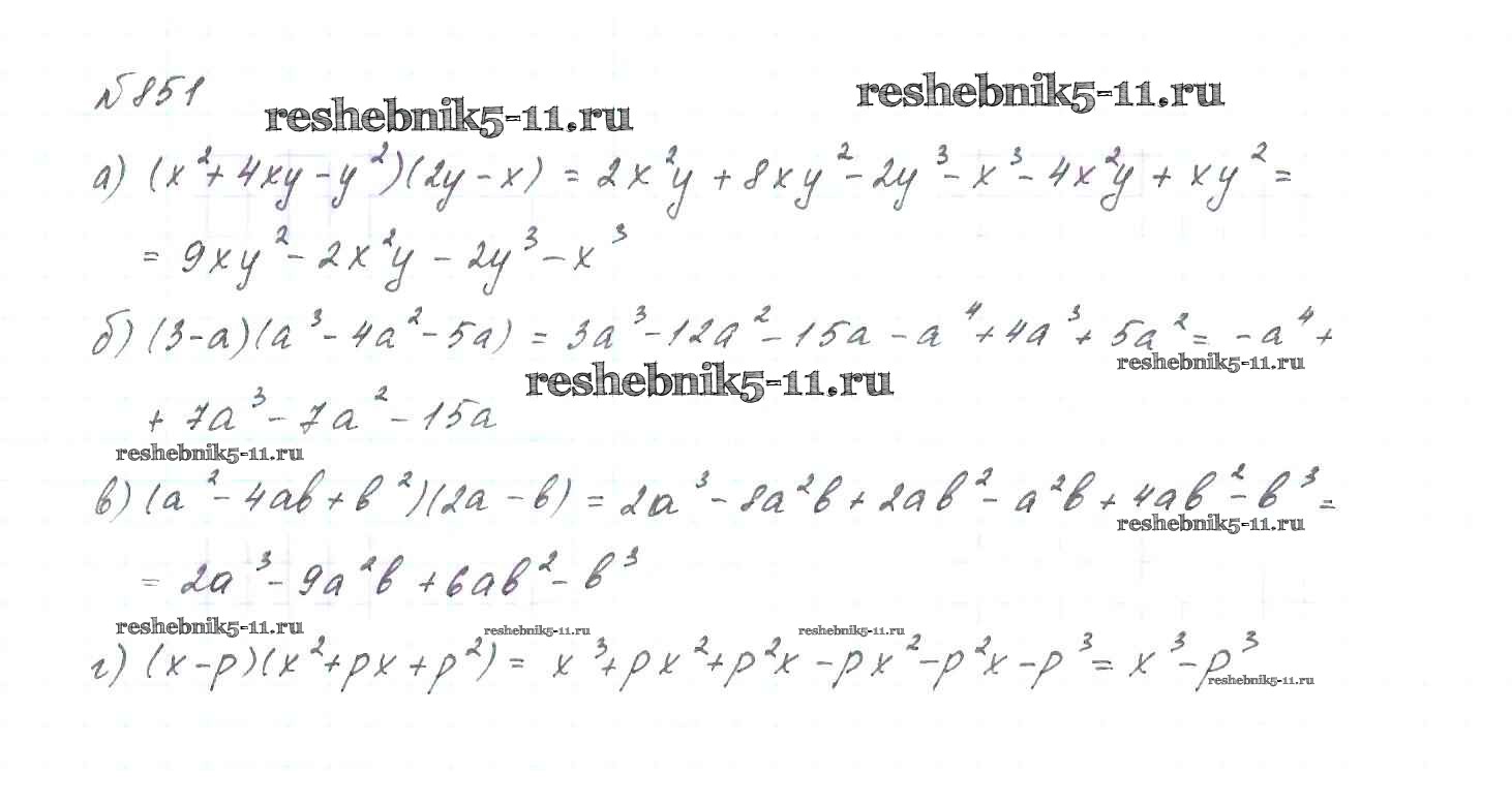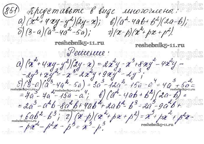 Готовая домашняя работа с ответами по Алгебре за 7 класс Макарычев, Миндюк, Нешков, Суворова Учебник Просвещение 2015 ФГОС - Упражнения 851