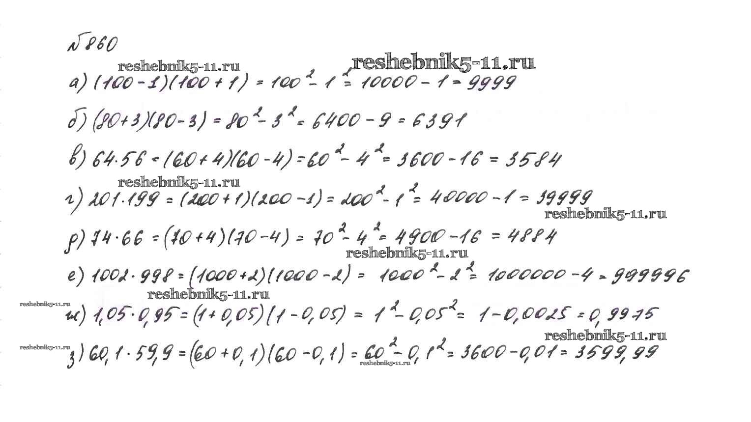 Готовая домашняя работа с ответами по Алгебре за 7 класс Макарычев, Миндюк, Нешков, Суворова Учебник Просвещение 2015 ФГОС - Упражнения 860