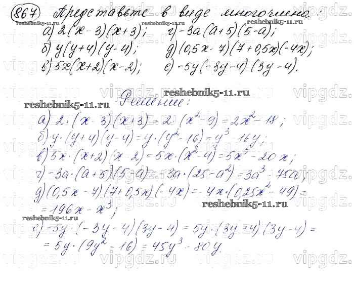 Готовая домашняя работа с ответами по Алгебре за 7 класс Макарычев, Миндюк, Нешков, Суворова Учебник Просвещение 2015 ФГОС - Упражнения 867