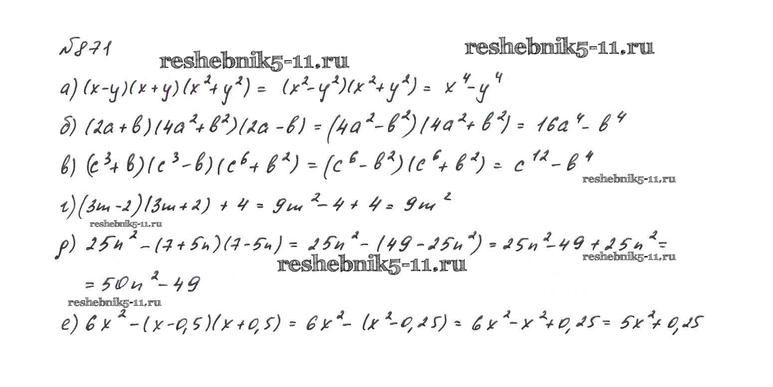Готовая домашняя работа с ответами по Алгебре за 7 класс Макарычев, Миндюк, Нешков, Суворова Учебник Просвещение 2015 ФГОС - Упражнения 871