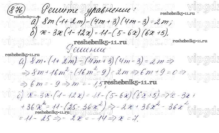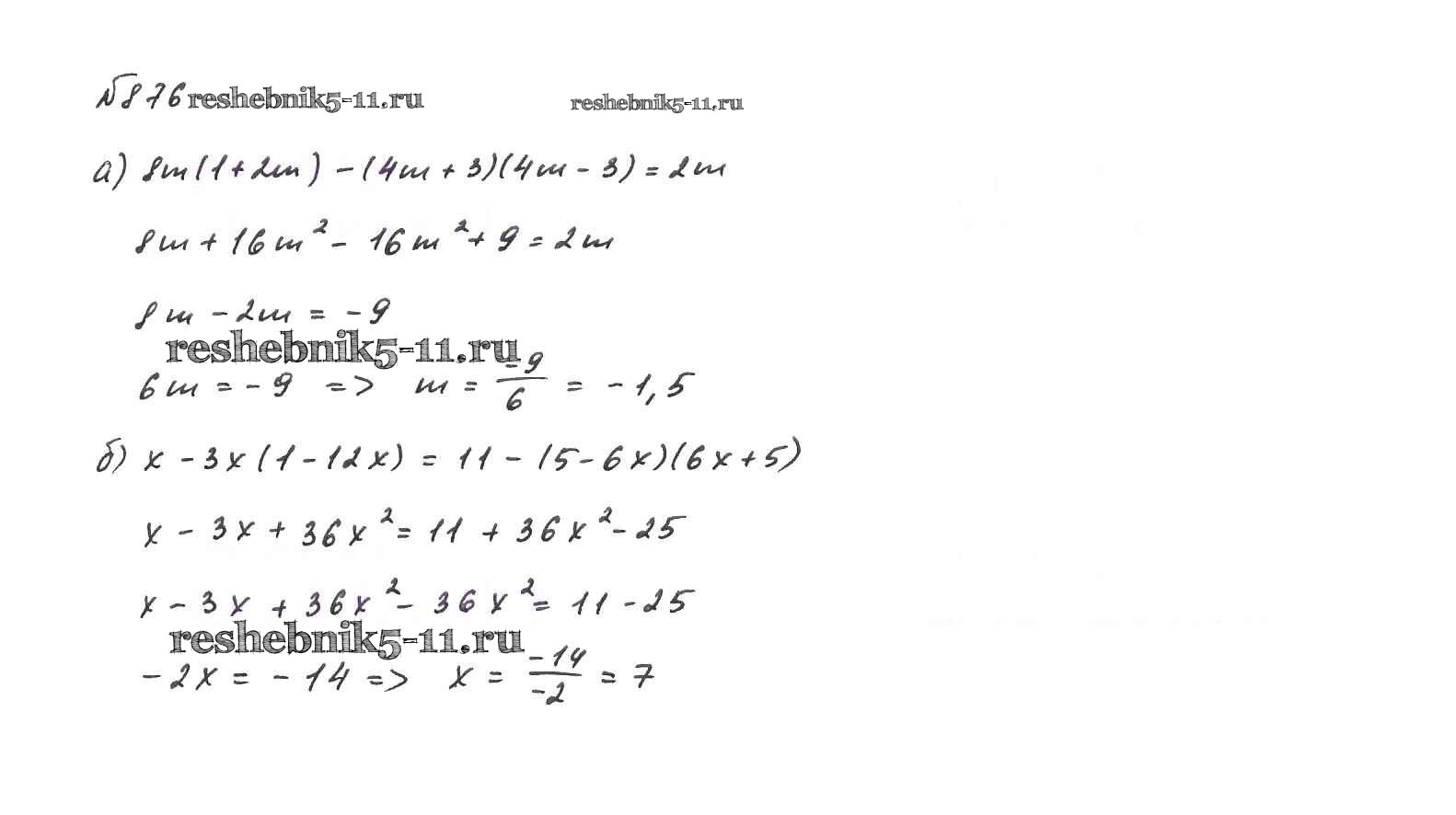 Готовая домашняя работа с ответами по Алгебре за 7 класс Макарычев, Миндюк, Нешков, Суворова Учебник Просвещение 2015 ФГОС - Упражнения 876