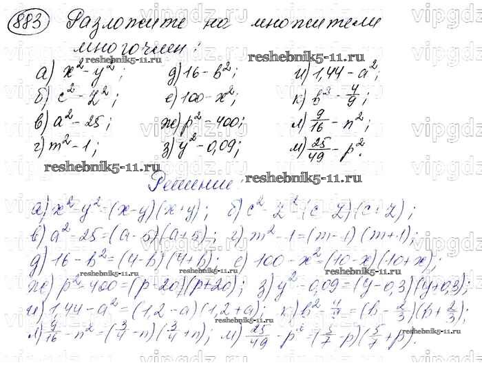 Готовая домашняя работа с ответами по Алгебре за 7 класс Макарычев, Миндюк, Нешков, Суворова Учебник Просвещение 2015 ФГОС - Упражнения 883