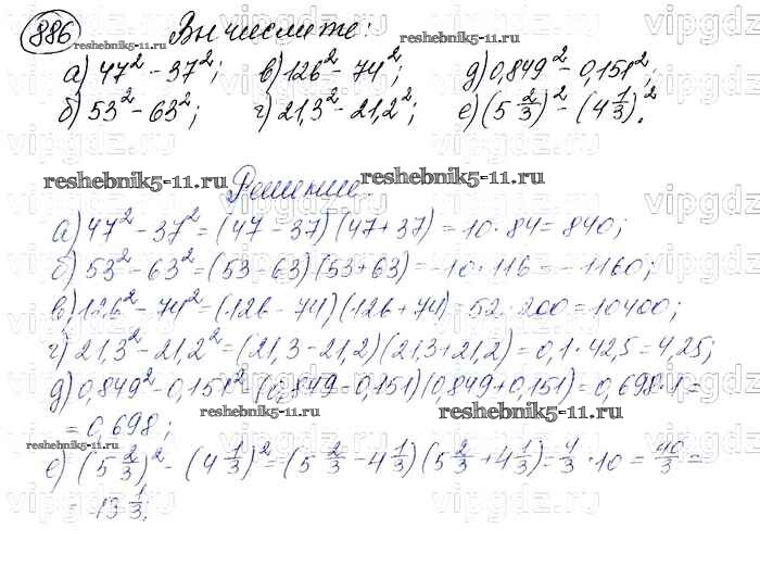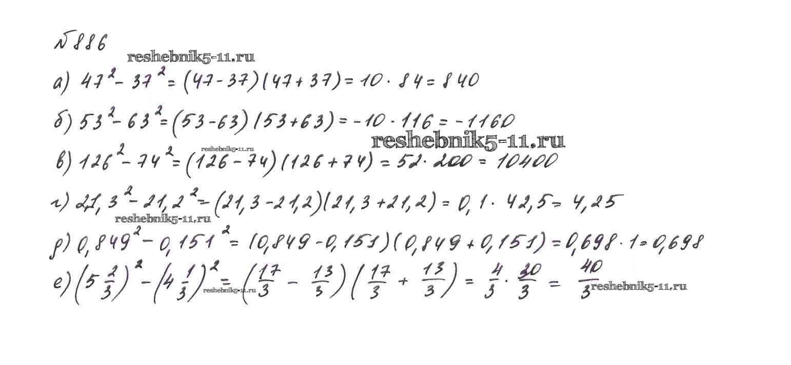 Готовая домашняя работа с ответами по Алгебре за 7 класс Макарычев, Миндюк, Нешков, Суворова Учебник Просвещение 2015 ФГОС - Упражнения 886