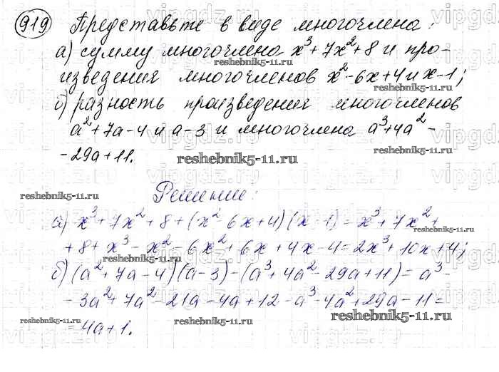 Готовая домашняя работа с ответами по Алгебре за 7 класс Макарычев, Миндюк, Нешков, Суворова Учебник Просвещение 2015 ФГОС - Упражнения 919