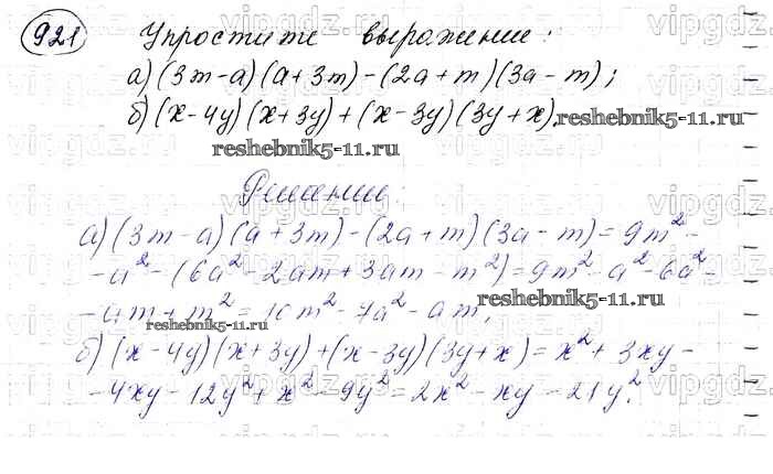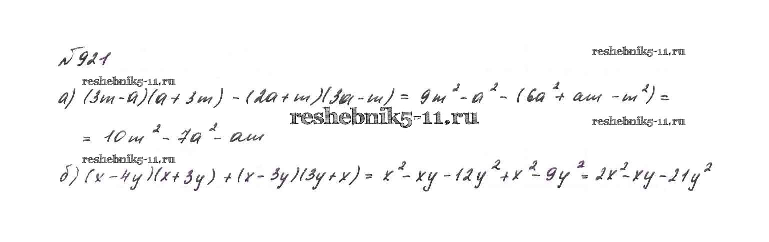 Готовая домашняя работа с ответами по Алгебре за 7 класс Макарычев, Миндюк, Нешков, Суворова Учебник Просвещение 2015 ФГОС - Упражнения 921