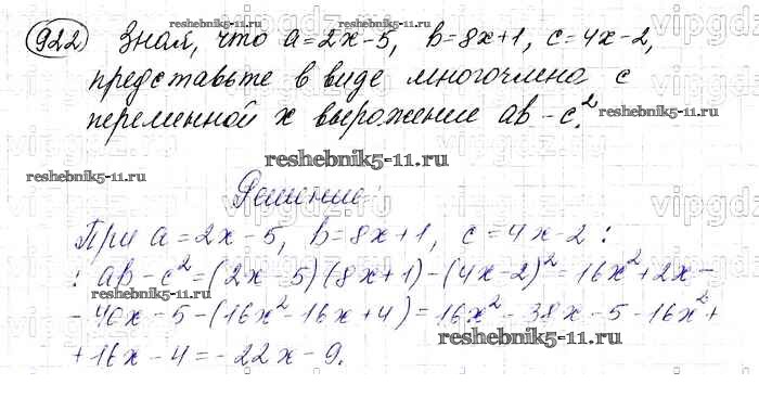 Готовая домашняя работа с ответами по Алгебре за 7 класс Макарычев, Миндюк, Нешков, Суворова Учебник Просвещение 2015 ФГОС - Упражнения 922