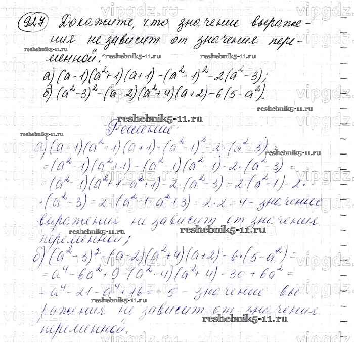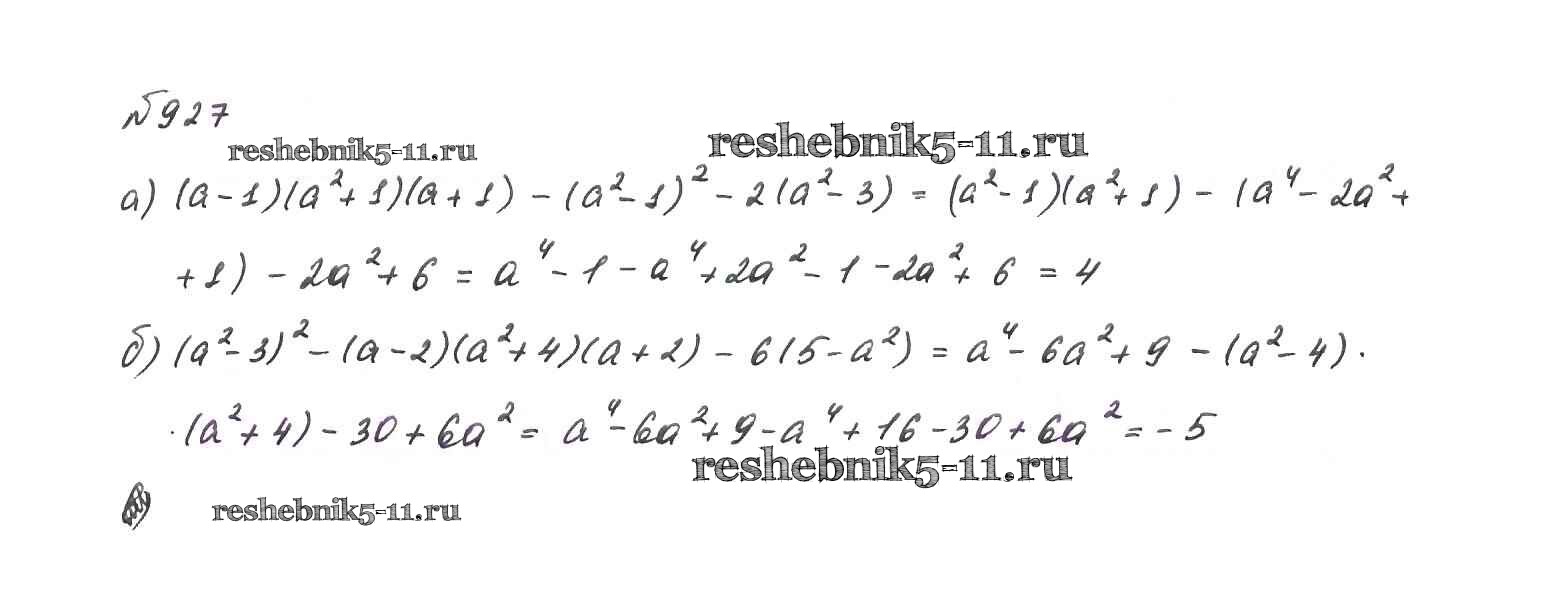 Готовая домашняя работа с ответами по Алгебре за 7 класс Макарычев, Миндюк, Нешков, Суворова Учебник Просвещение 2015 ФГОС - Упражнения 927