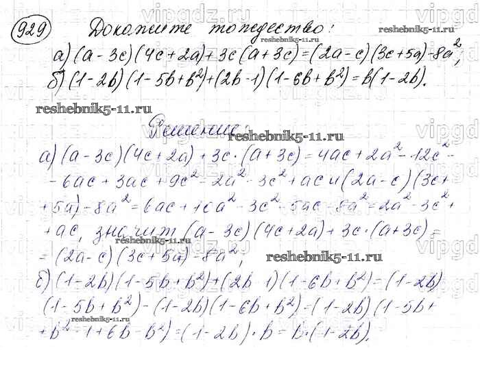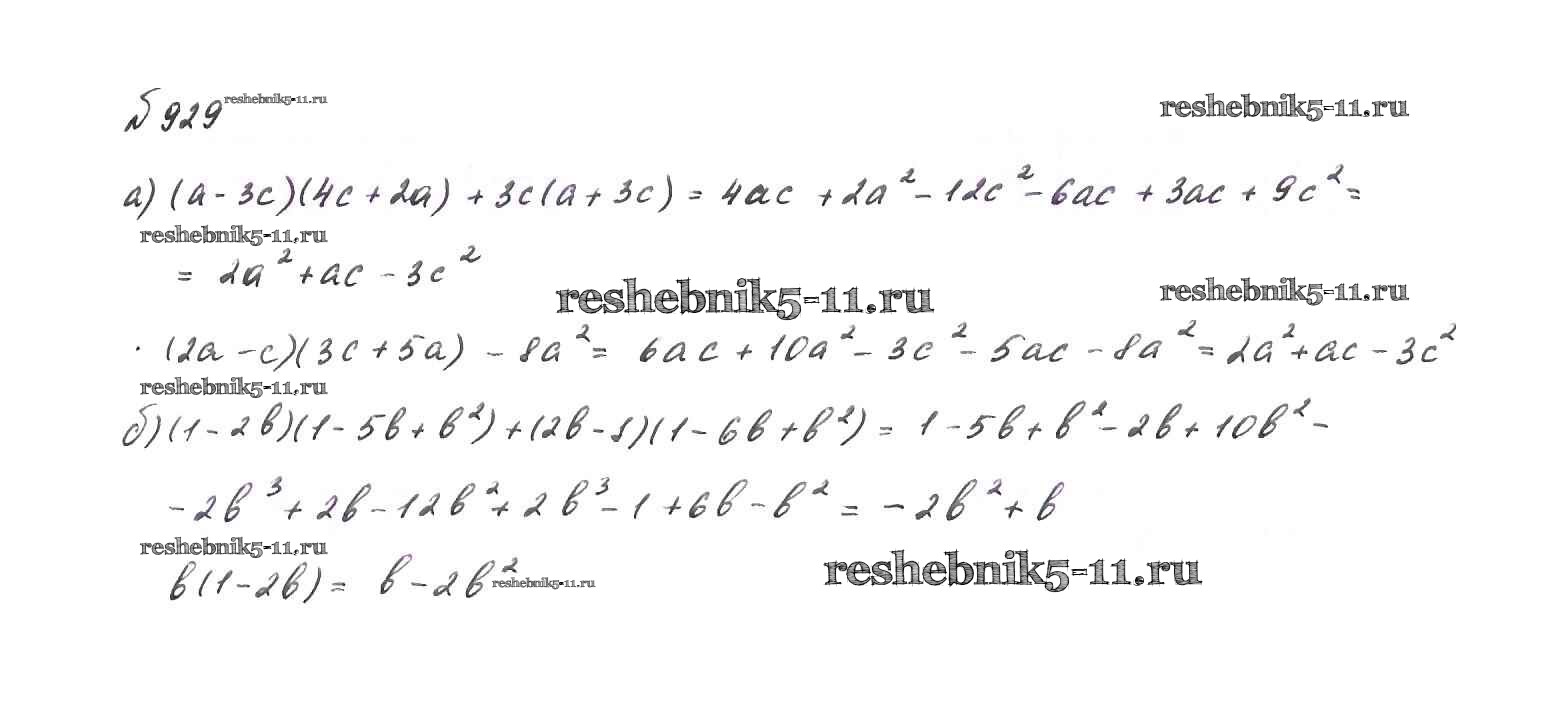 Готовая домашняя работа с ответами по Алгебре за 7 класс Макарычев, Миндюк, Нешков, Суворова Учебник Просвещение 2015 ФГОС - Упражнения 929
