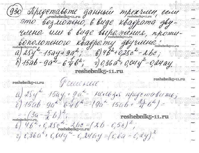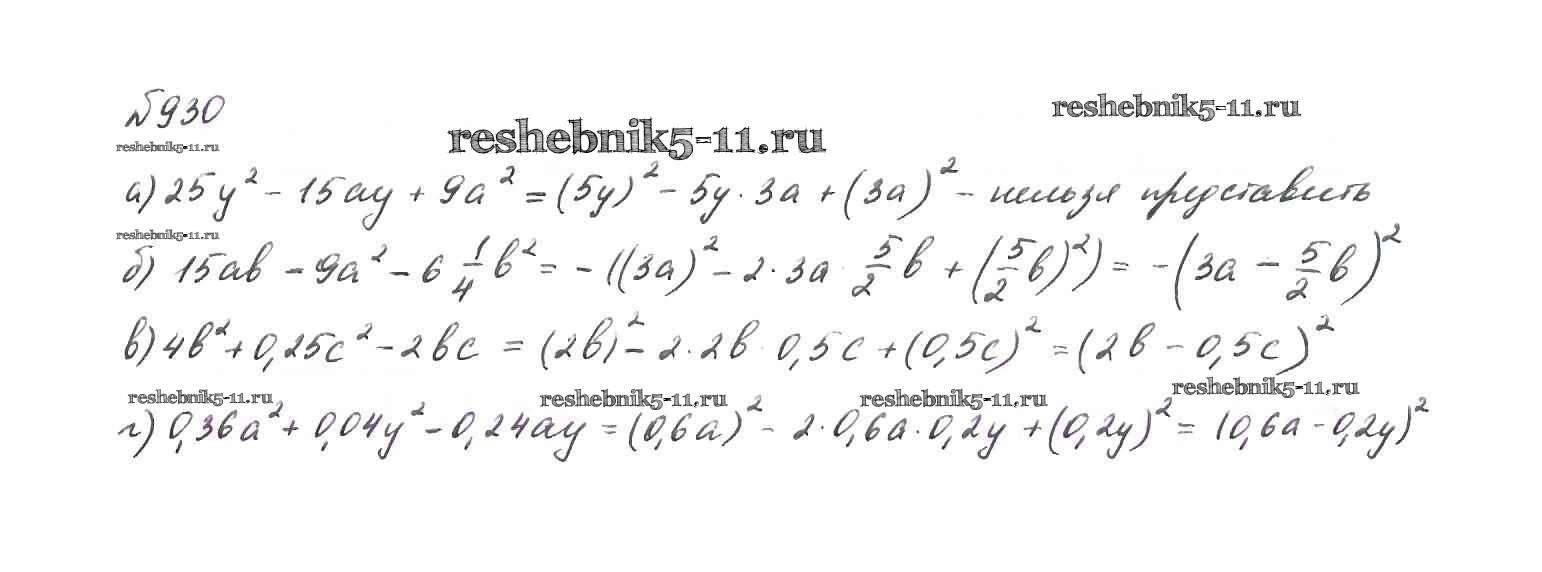 Готовая домашняя работа с ответами по Алгебре за 7 класс Макарычев, Миндюк, Нешков, Суворова Учебник Просвещение 2015 ФГОС - Упражнения 930