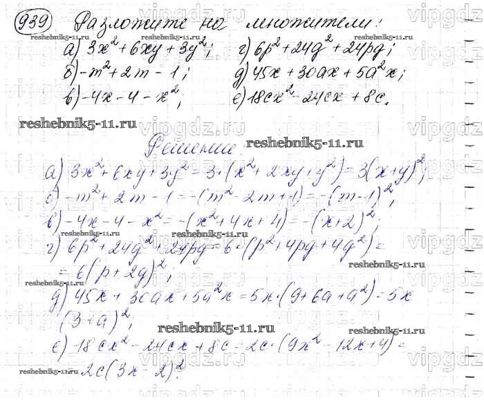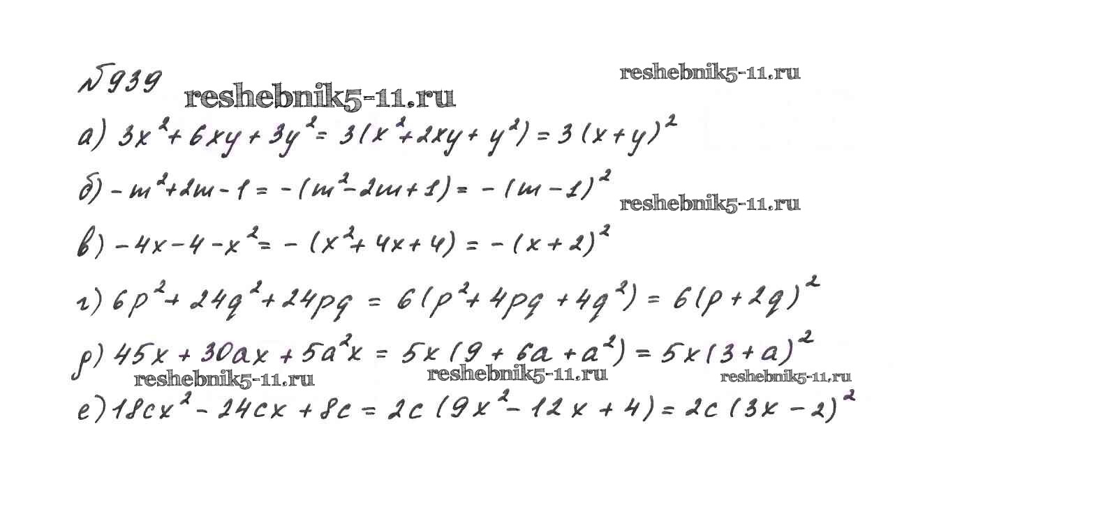 Готовая домашняя работа с ответами по Алгебре за 7 класс Макарычев, Миндюк, Нешков, Суворова Учебник Просвещение 2015 ФГОС - Упражнения 939