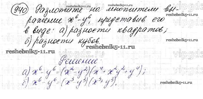 Готовая домашняя работа с ответами по Алгебре за 7 класс Макарычев, Миндюк, Нешков, Суворова Учебник Просвещение 2015 ФГОС - Упражнения 940