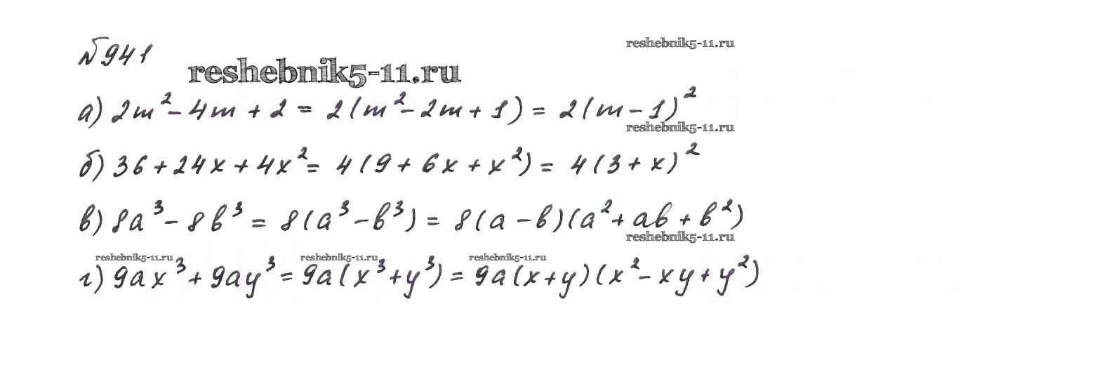 Готовая домашняя работа с ответами по Алгебре за 7 класс Макарычев, Миндюк, Нешков, Суворова Учебник Просвещение 2015 ФГОС - Упражнения 941