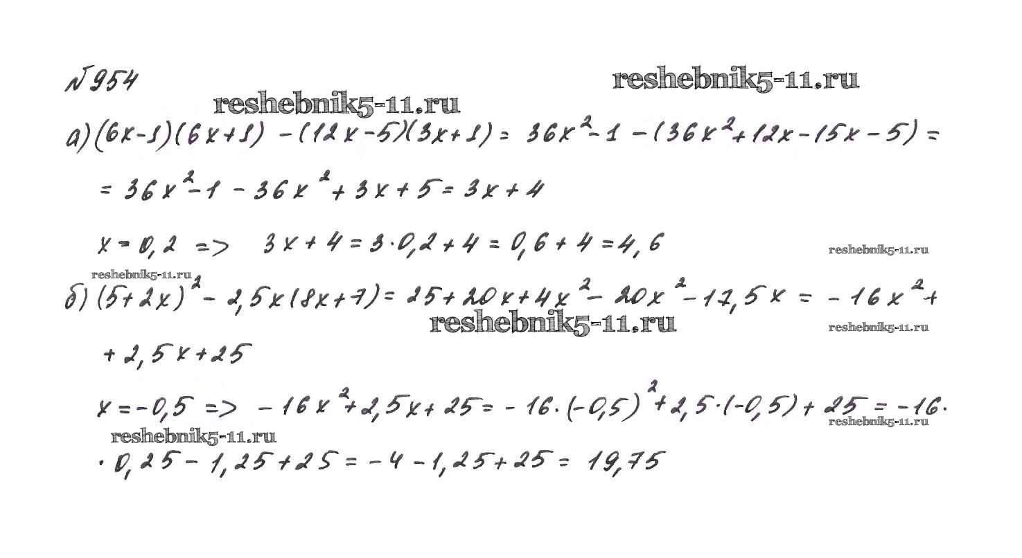 Готовая домашняя работа с ответами по Алгебре за 7 класс Макарычев, Миндюк, Нешков, Суворова Учебник Просвещение 2015 ФГОС - Упражнения 954