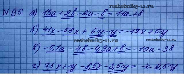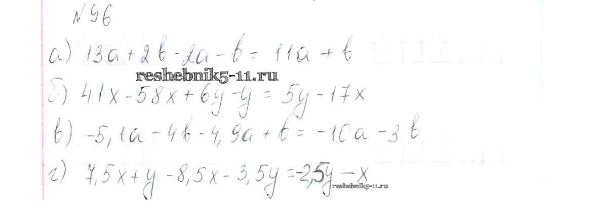 Готовая домашняя работа с ответами по Алгебре за 7 класс Макарычев, Миндюк, Нешков, Суворова Учебник Просвещение 2015 ФГОС - Упражнения 96