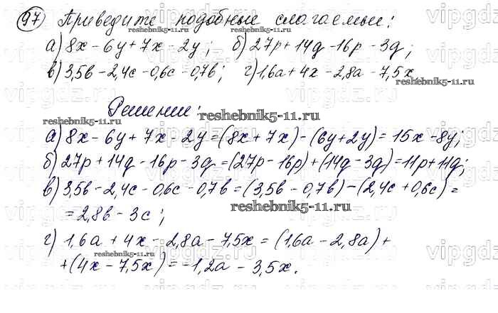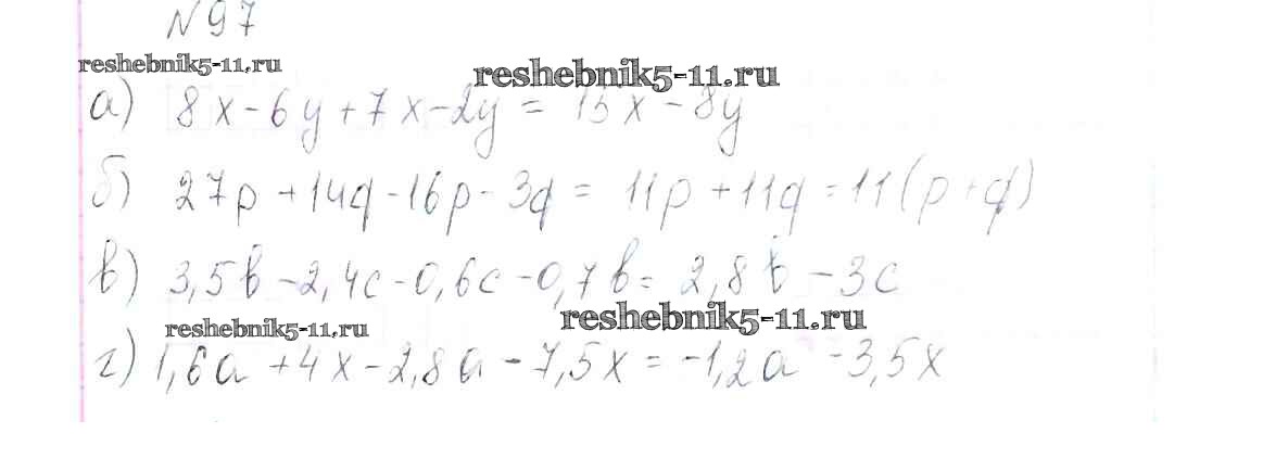 Готовая домашняя работа с ответами по Алгебре за 7 класс Макарычев, Миндюк, Нешков, Суворова Учебник Просвещение 2015 ФГОС - Упражнения 97