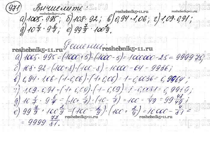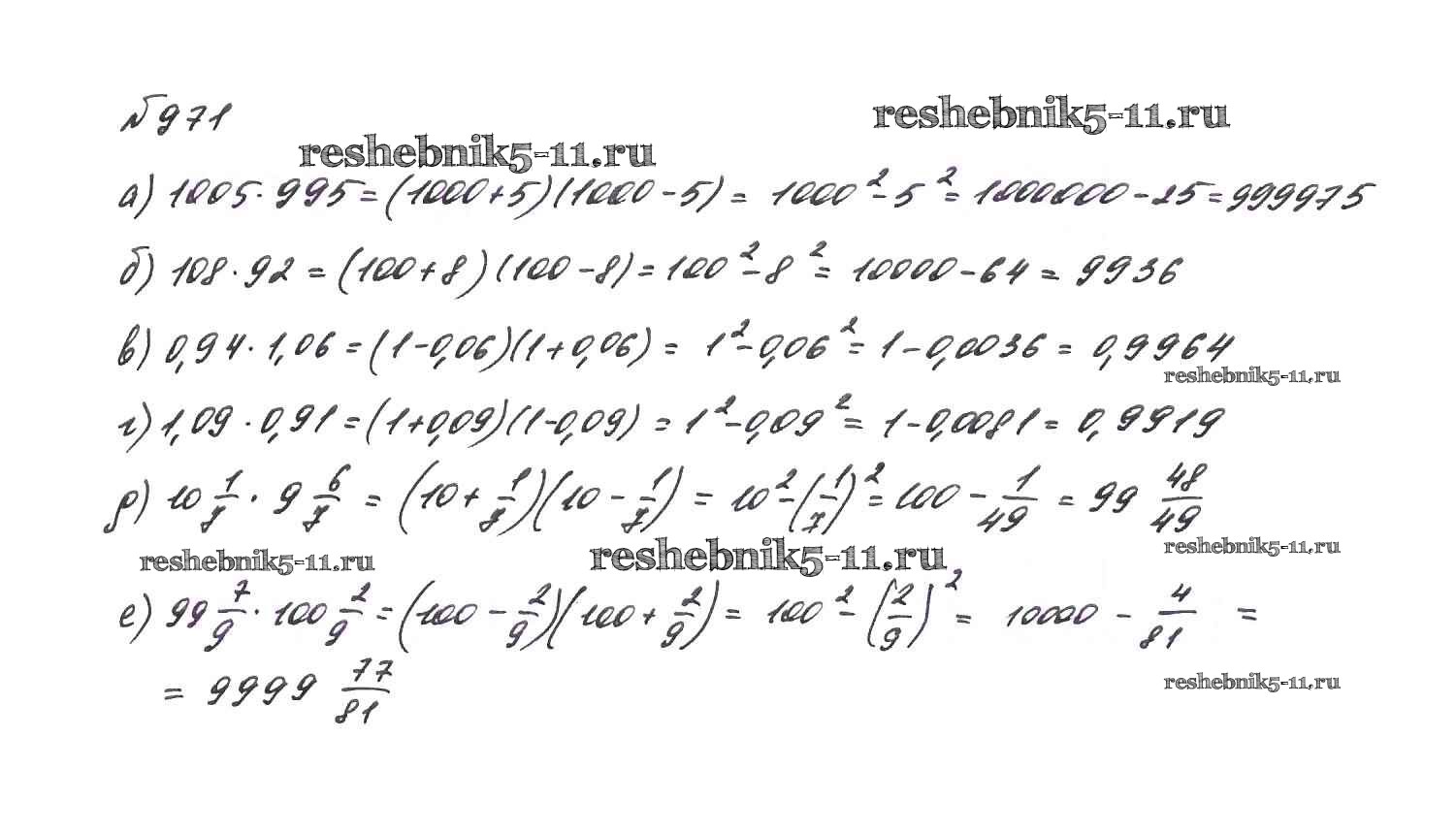 Готовая домашняя работа с ответами по Алгебре за 7 класс Макарычев, Миндюк, Нешков, Суворова Учебник Просвещение 2015 ФГОС - Упражнения 971