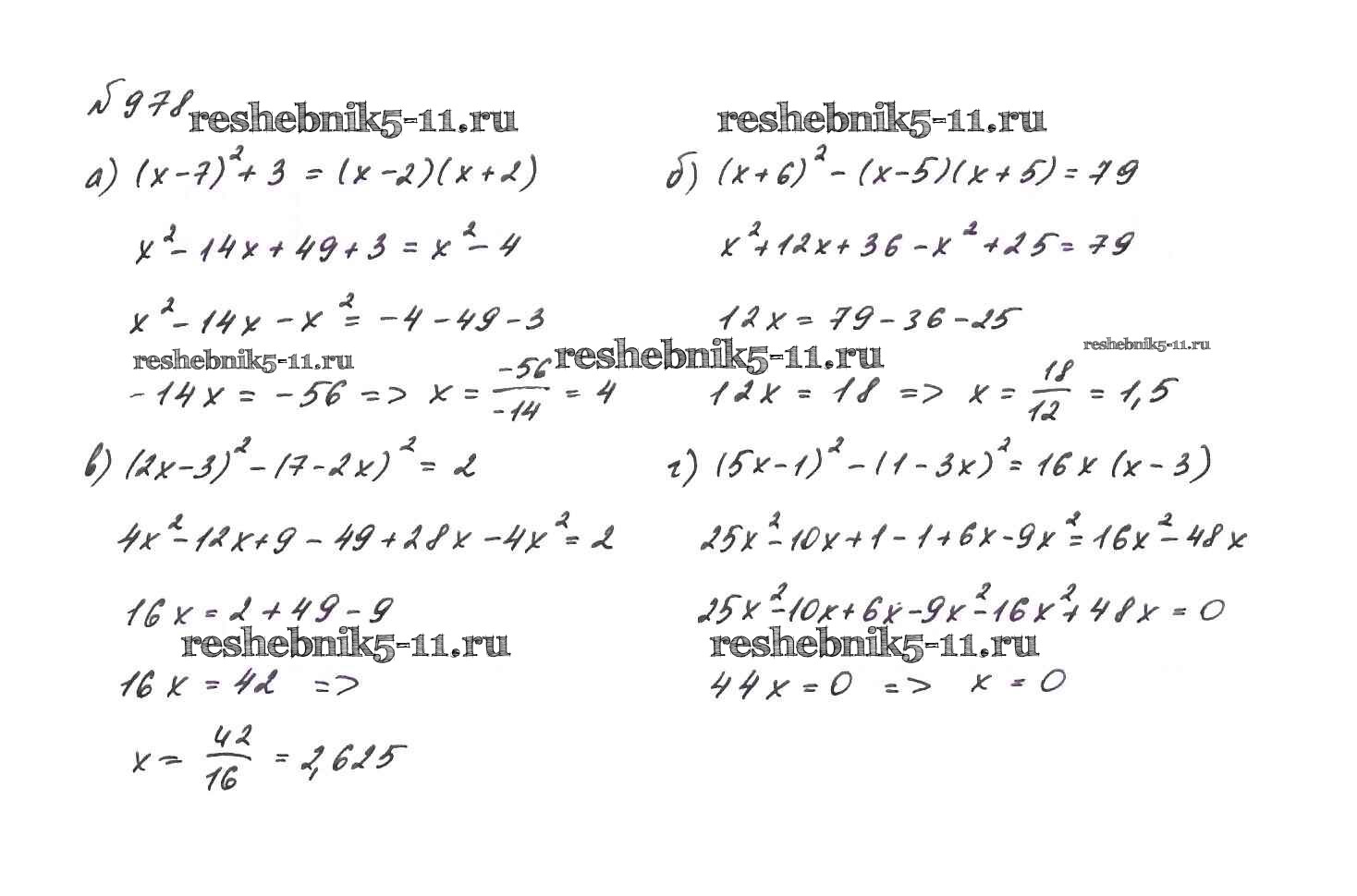 Готовая домашняя работа с ответами по Алгебре за 7 класс Макарычев, Миндюк, Нешков, Суворова Учебник Просвещение 2015 ФГОС - Упражнения 978