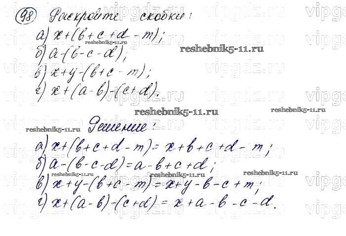 Готовая домашняя работа с ответами по Алгебре за 7 класс Макарычев, Миндюк, Нешков, Суворова Учебник Просвещение 2015 ФГОС - Упражнения 98