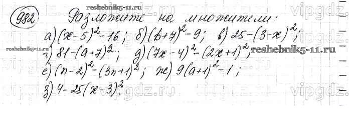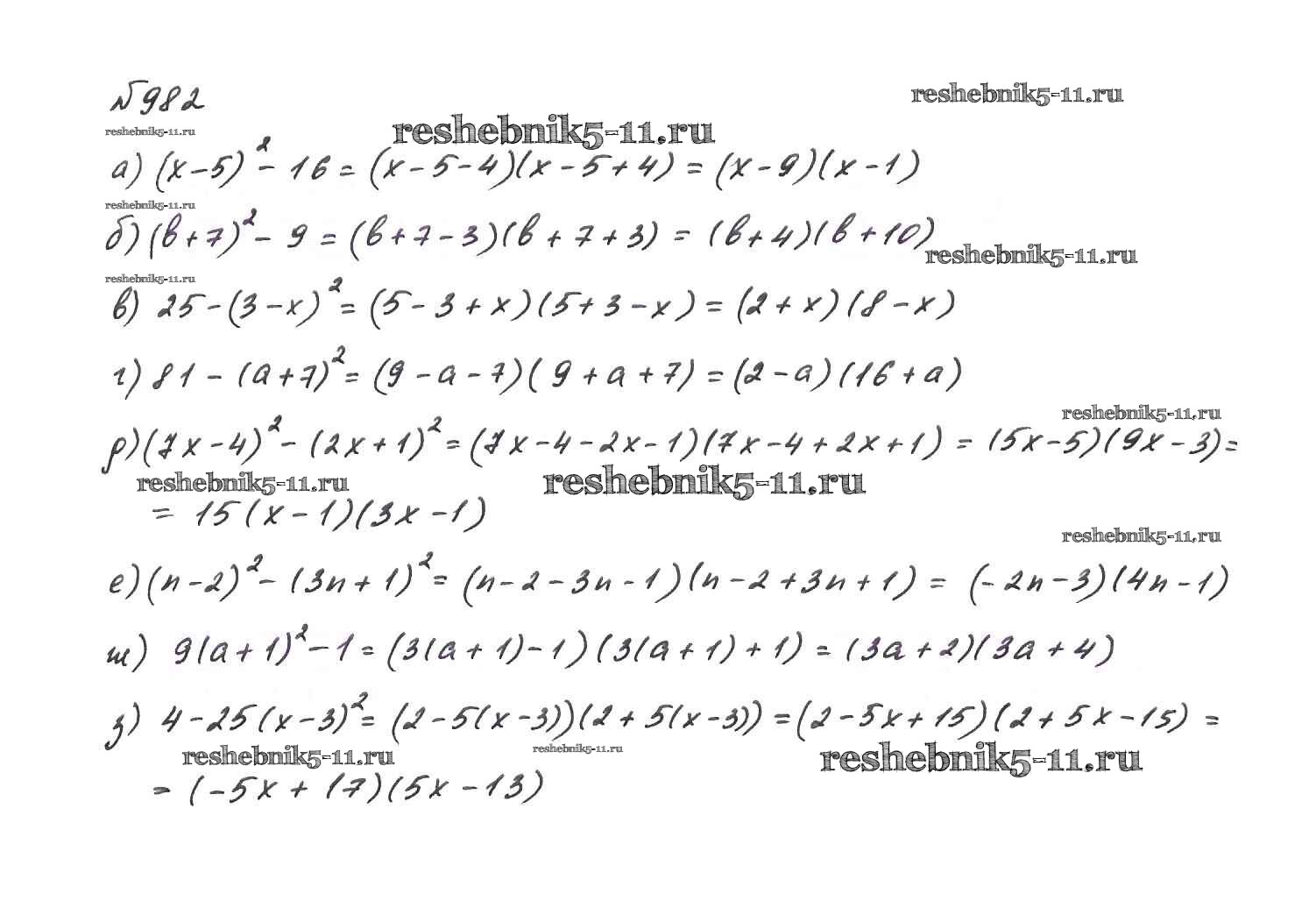 Готовая домашняя работа с ответами по Алгебре за 7 класс Макарычев, Миндюк, Нешков, Суворова Учебник Просвещение 2015 ФГОС - Упражнения 982