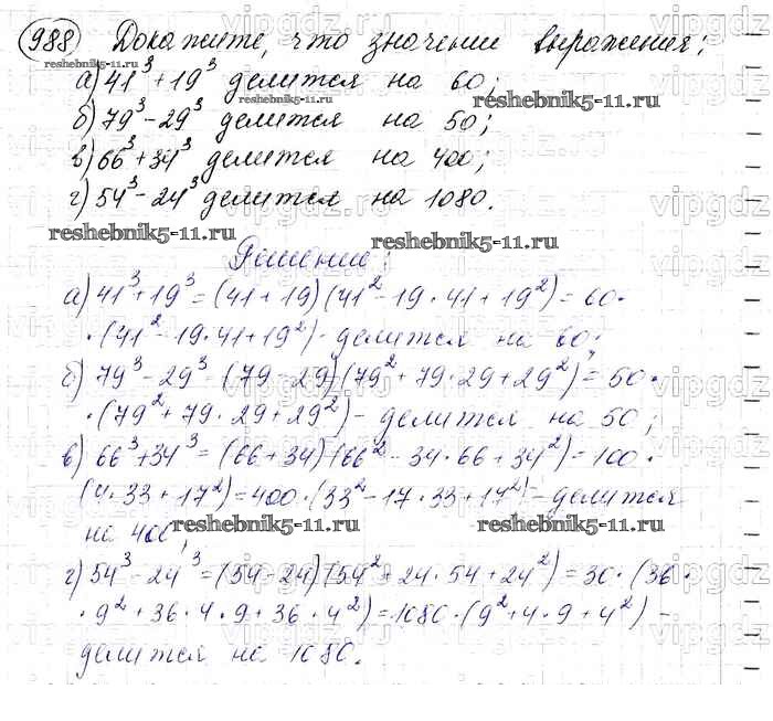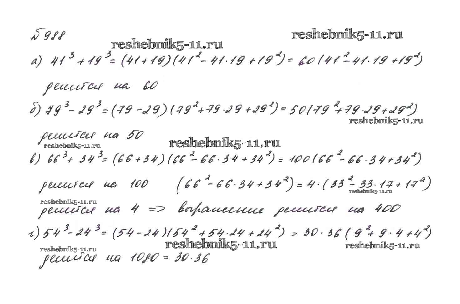 Готовая домашняя работа с ответами по Алгебре за 7 класс Макарычев, Миндюк, Нешков, Суворова Учебник Просвещение 2015 ФГОС - Упражнения 988