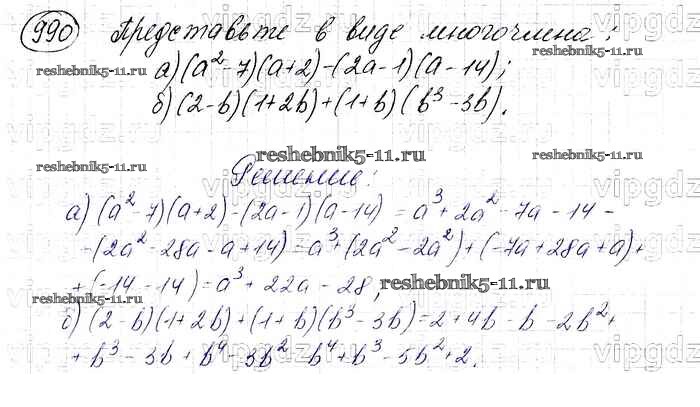 Готовая домашняя работа с ответами по Алгебре за 7 класс Макарычев, Миндюк, Нешков, Суворова Учебник Просвещение 2015 ФГОС - Упражнения 990