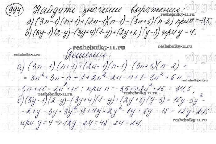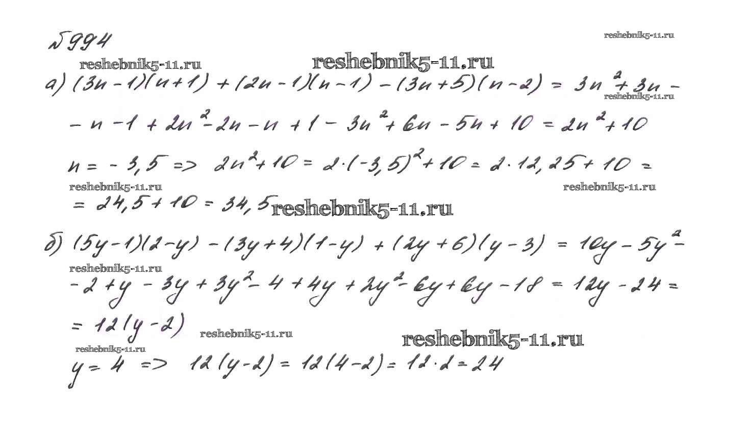 Готовая домашняя работа с ответами по Алгебре за 7 класс Макарычев, Миндюк, Нешков, Суворова Учебник Просвещение 2015 ФГОС - Упражнения 994