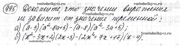 Готовая домашняя работа с ответами по Алгебре за 7 класс Макарычев, Миндюк, Нешков, Суворова Учебник Просвещение 2015 ФГОС - Упражнения 995