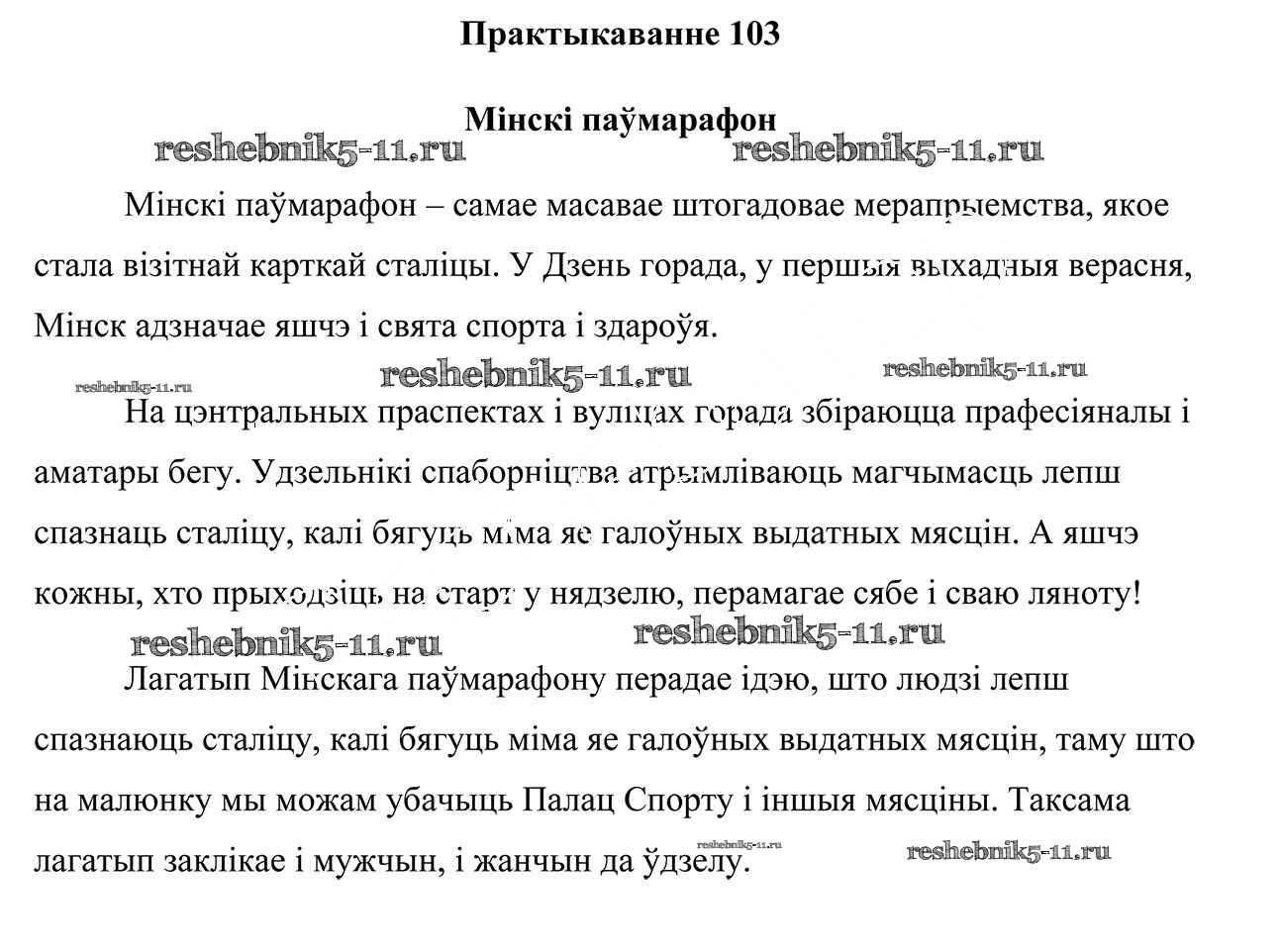 Белорусский язык за 7 класс Валочка Учебник Национальный институт образования практыкаванне 103