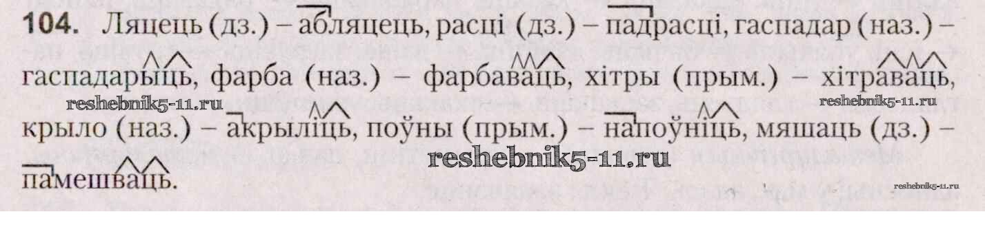Готовая домашняя работа с ответами по Белорусскому языку за 7 класс Валочка, Язерская Учебник Национальный институт образования 2020 ФГОС - Практыкаванні 104