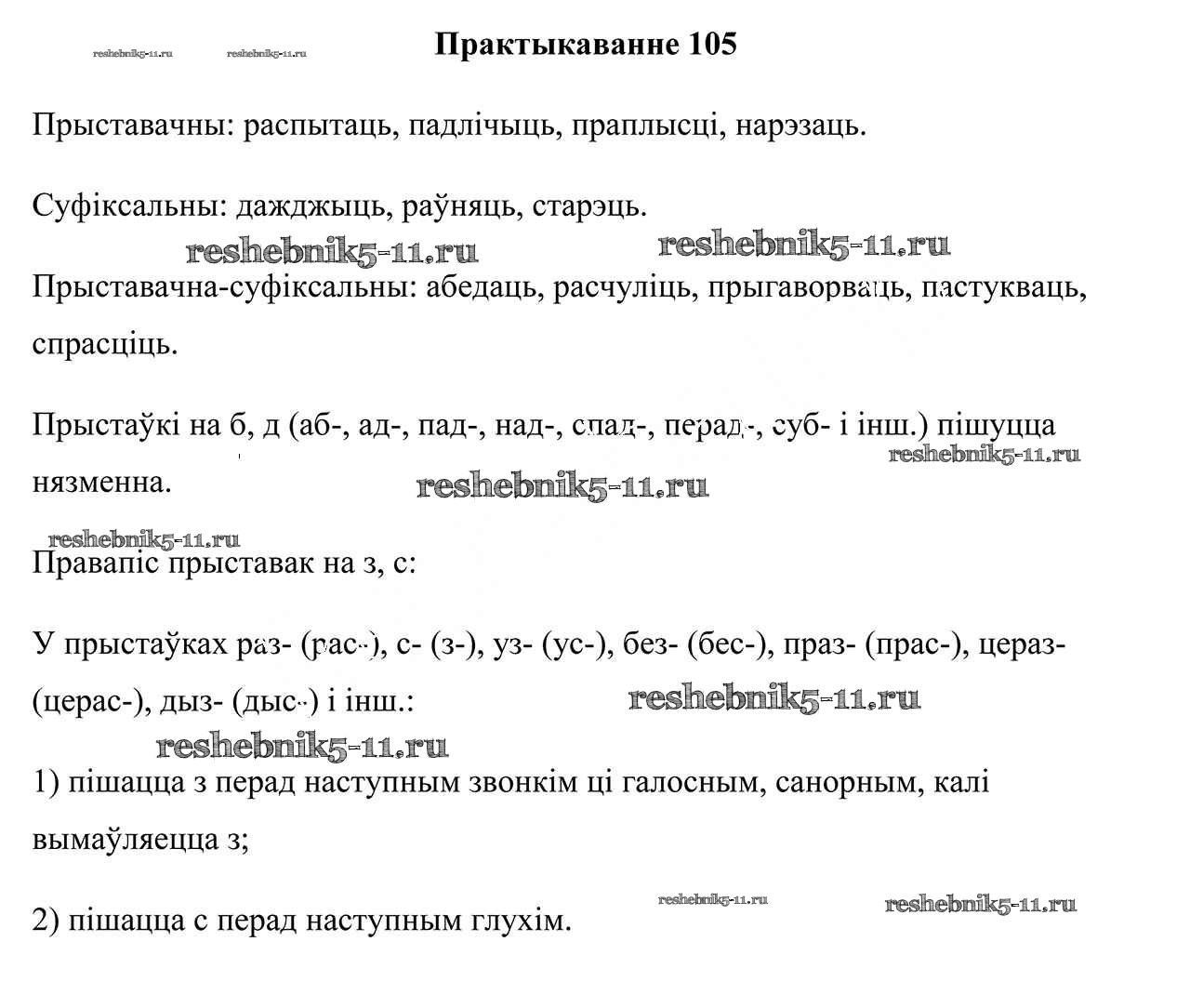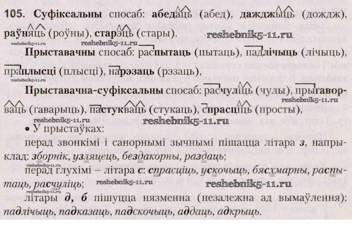 Готовая домашняя работа с ответами по Белорусскому языку за 7 класс Валочка, Язерская Учебник Национальный институт образования 2020 ФГОС - Практыкаванні 105